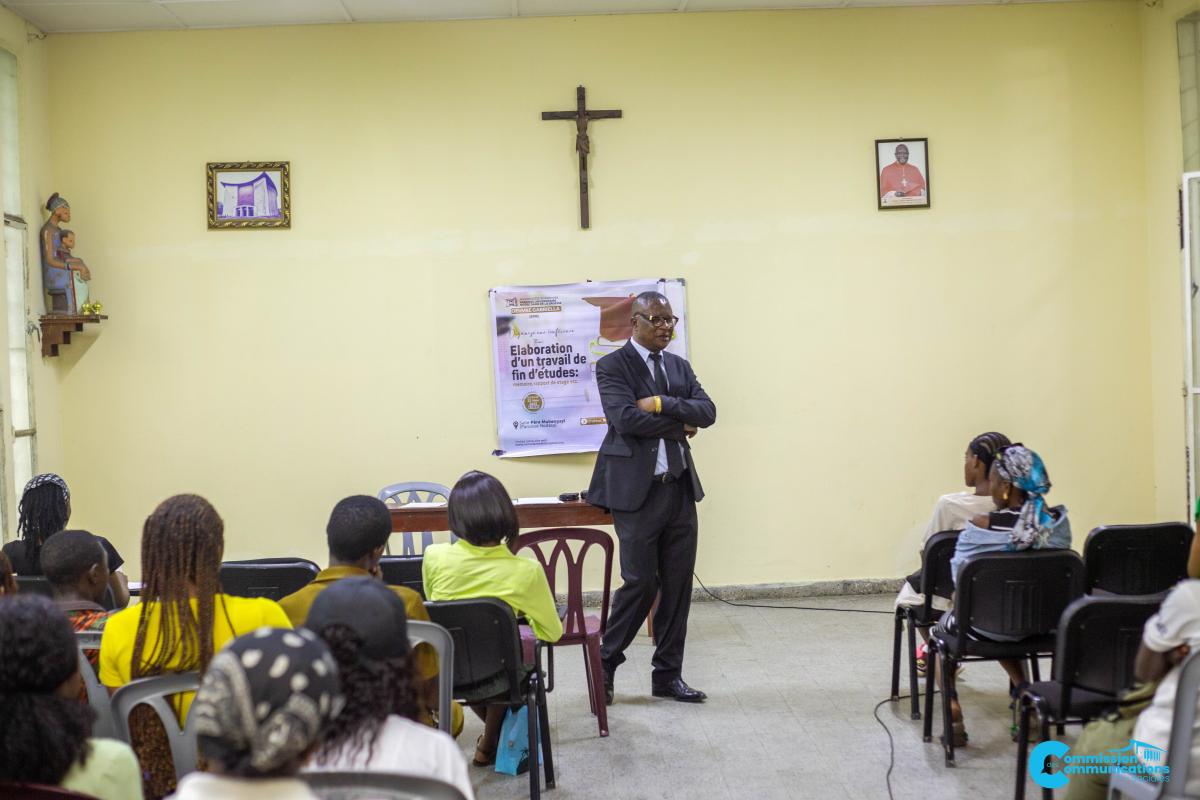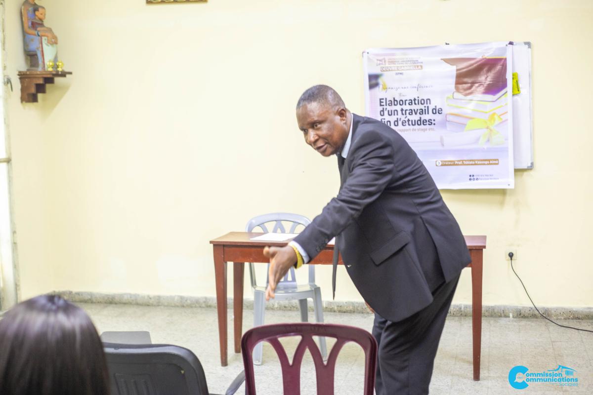 La Salle Père Mubengayi de la Paroisse Universitaire Notre-Dame de la Sagesse (NODASA) a accueilli, ce samedi 22 novembre 2025, une conférence organisée par l’Œuvre Gabriella (EFM) sur le thème « Élaboration d’un travail de fin d’études : mémoire, rapport de stage, etc. ». Animée par le Professeur Tshiata Kasongo Aimé, la rencontre a réuni de nombreux étudiants désireux d’améliorer leur compréhension de la méthodologie scientifique.
